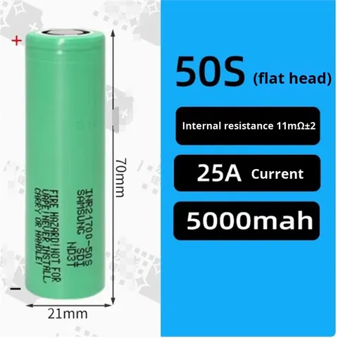 Samsung Original 5000mAh 3,6 V 50S 21700 Modelo de batería Nueva marca Nueva batería de iones de litio cilíndrica de Inr21700-50S